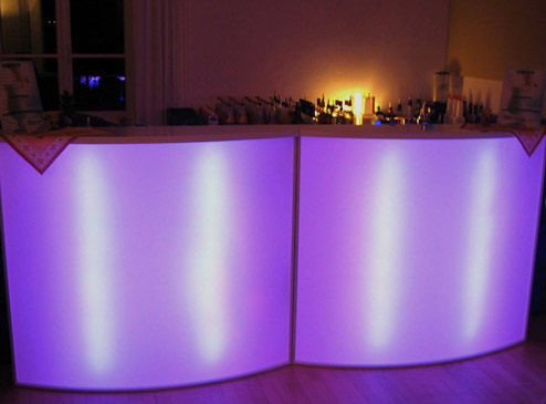 Die Design-Bar ist eine Mischung aus zeitlichem Design in Hochglanz und neuster Beleuchtungs-Technologie. Sie lässt sich kurzfristig in jeder Farbe und Intensität ausstrahlen und kann somit an jede Location optimal angepasst werden.